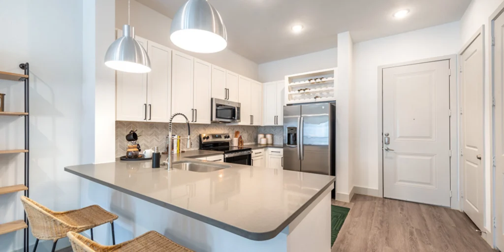 The result was a multifamily community that balances comfort, style, and long-term durability. The completed interiors bring the design vision to life and support the ongoing success of this growing waterfront district.