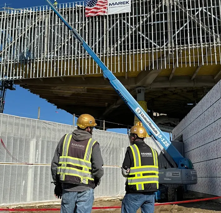 SolutionMAREK partnered with Linbeck and RVA to complete the drywall, framing, wall panels, and ceiling systems throughout the museum. Our team performed detailed prefabrication and installation of a sub-framing system for façade panels imported from Argentina. With more than 688 receiver clips installed using laser controls, string lines, and GPS coordinates, every element requires a high level of accuracy and coordination.