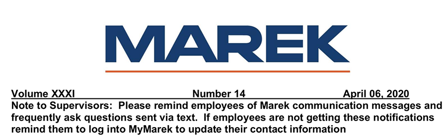- n Stay updated with Marek communications (text, social platforms, TBTs, and publications).
